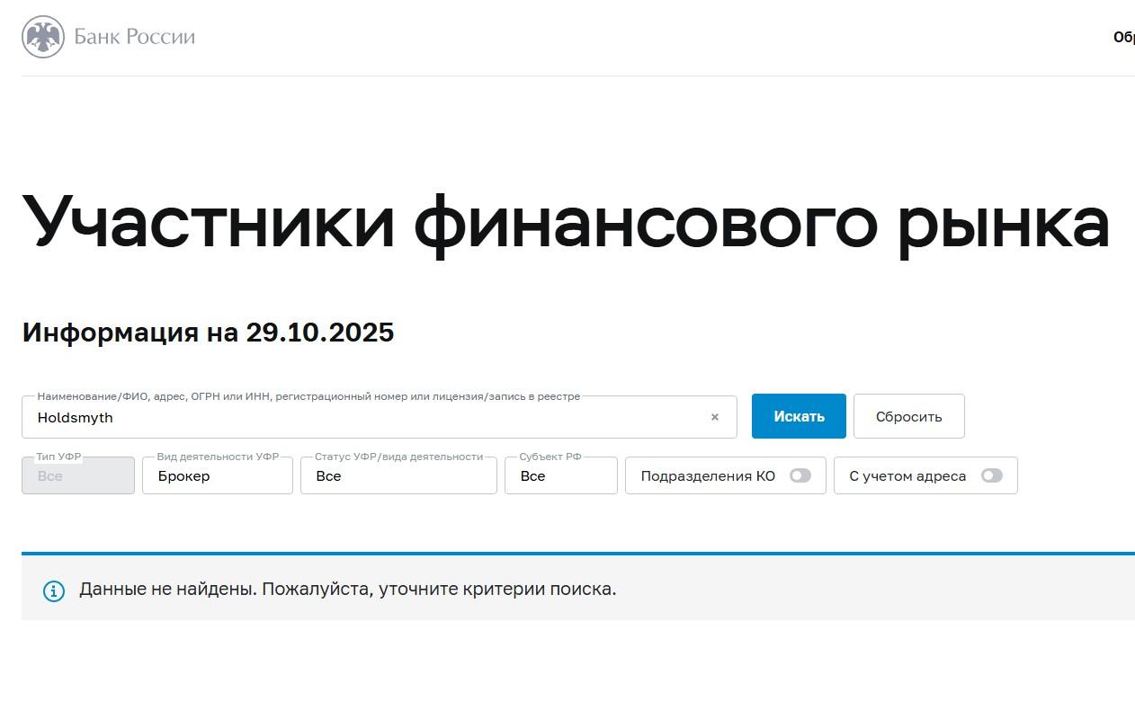 Владельцы Platform Holdsmyth Ltd анонимные. Нет ни фамилий, ни фотографий. Отсутствует документальное подтверждение законной работы брокера. В реестре Центрального банка России и других финансовых регуляторов компания не числится.