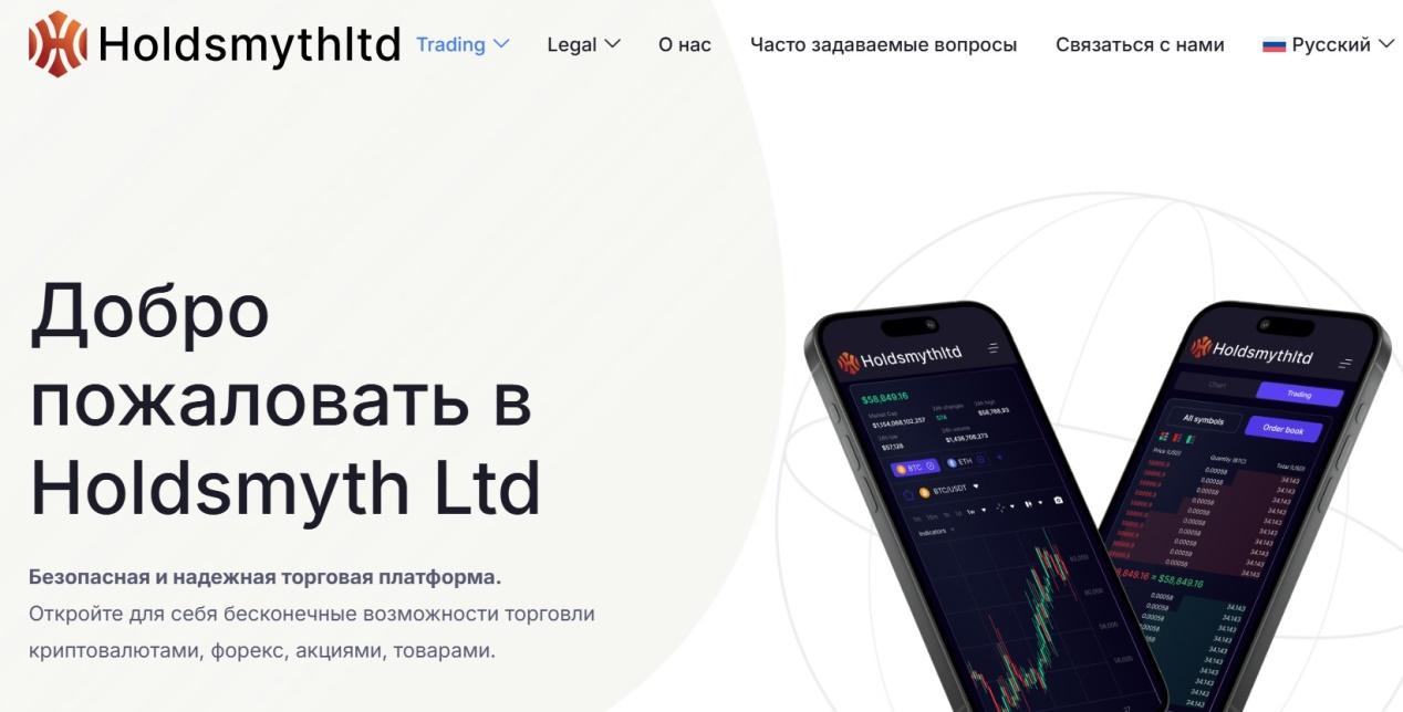 Holdsmyth Ltd – брокерская платформа. Предлагает торговать разными активами. Обещает выгодные условия и безопасность транзакций. Следует ли доверять ей, рассмотрим в нашем обзоре.