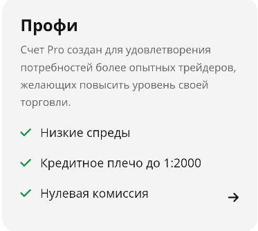 • Профи-счет обещает низкие спреды, нулевые комиссии.