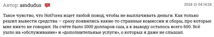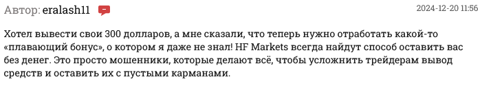 В сети о Hf Markets group и компаниях, входящих в холдинг встречается множество отзывов. Люди пишут о проблемах на протяжении всего сотрудничества с компанией с момента пополнения счета. После внесения денег площадка часто навязывает дополнительные услуги, сборы и комиссии, о которых ранее информации не было.