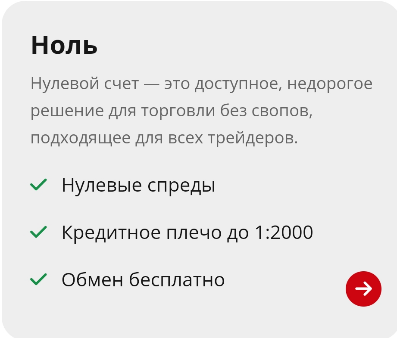 • Нулевой счет подойдет трейдерам с любым опытом. Здесь заявлены нулевые спреды, кредитное плечо 1:2000.