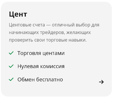 • Центовый или валютный счет подходит новичкам: торговля идет центами, комиссия нулевая.