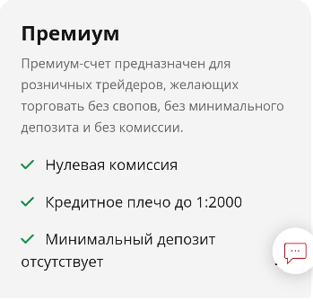 • Премиум дает возможность торговать без свопов, минимального депозита и комиссии.