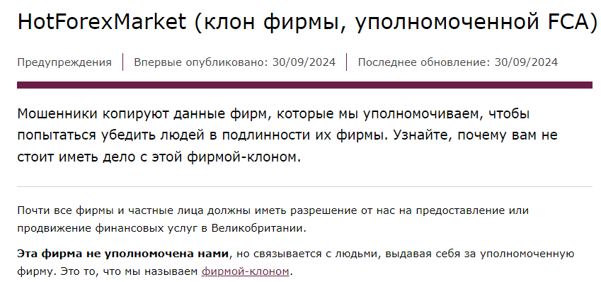 Проверка на сайте FCA показала, что деятельность брокера финансовой организацией не регулируется. Другие лицензии также фейковые. FCA называет компанию фирмой-клоном, которая замечена в мошенничестве, хочет убедить клиентов в своей подлинности.