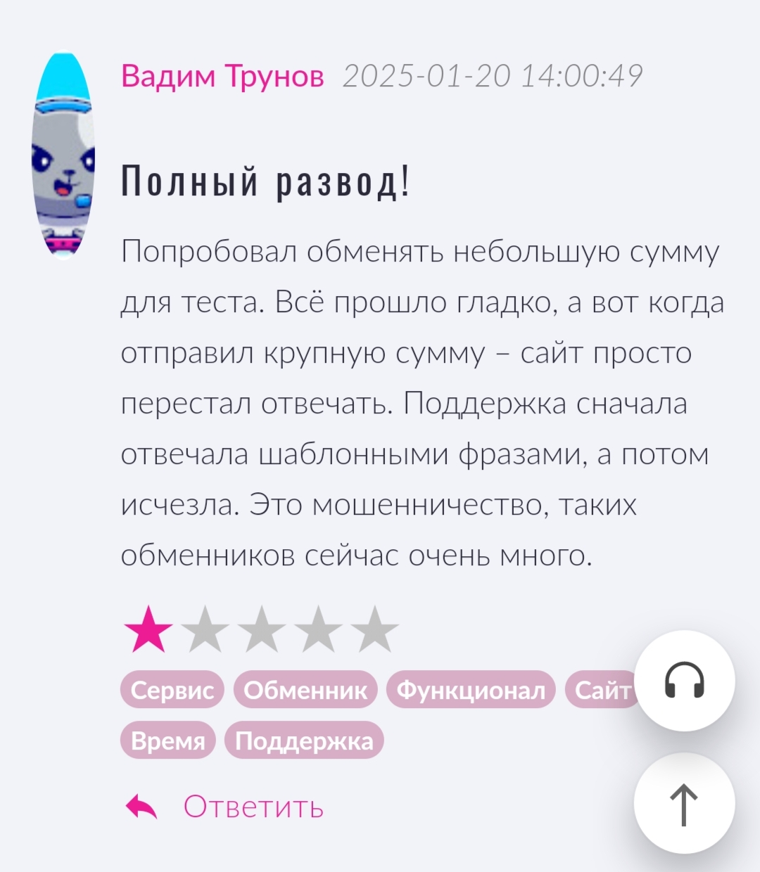 • Проект получил отрицательные отзывы и критику, что говорит о возможности столкнуться с мошенничеством со стороны обменника.