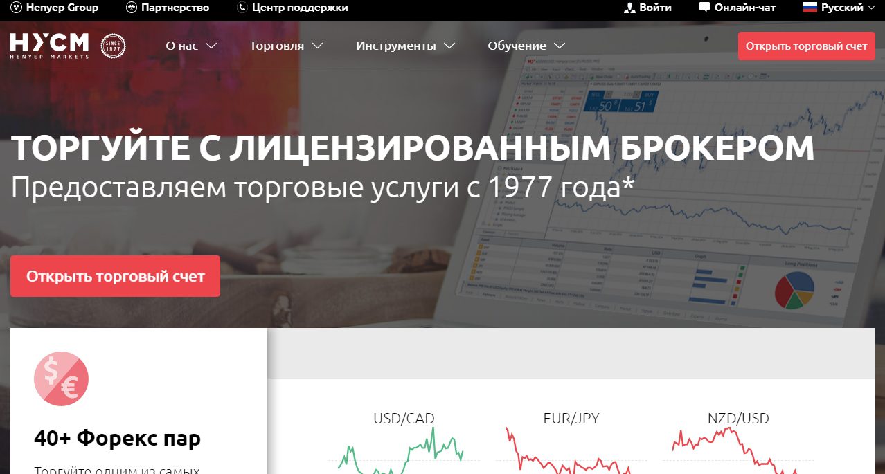 Официальный сайт HYCM демонстрирует красивые графики и картинки, а также в общих чертах рассказывает о том, чем занимается компания. На самом деле, это простой одностраничный сайт, который дает лишь минимум информации. Если быть точнее, то HYCM – это посредник, который рекламирует доступ на торговую платформу MetaTrader4. Видимо, вся прибыль идет с партнерской программы, в зависимости от того, какие суммы переводят на депозит новоприбывшие клиенты.