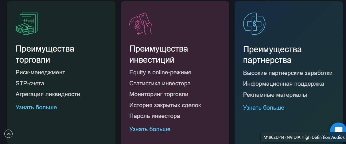 Брокер обещает клиентам ряд преимуществ: