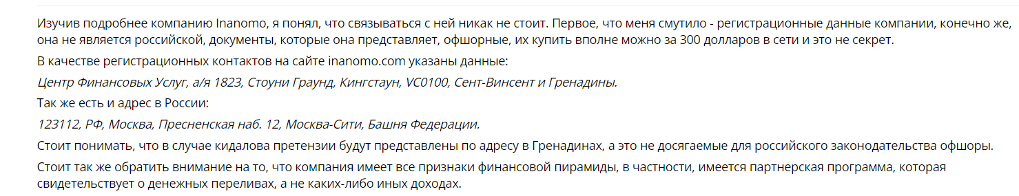 В этом обзоре мы разберем работу площадки и компании, рассмотрим мнения пользователей в интернете и попробуем выявить на «Инаномо» обман.