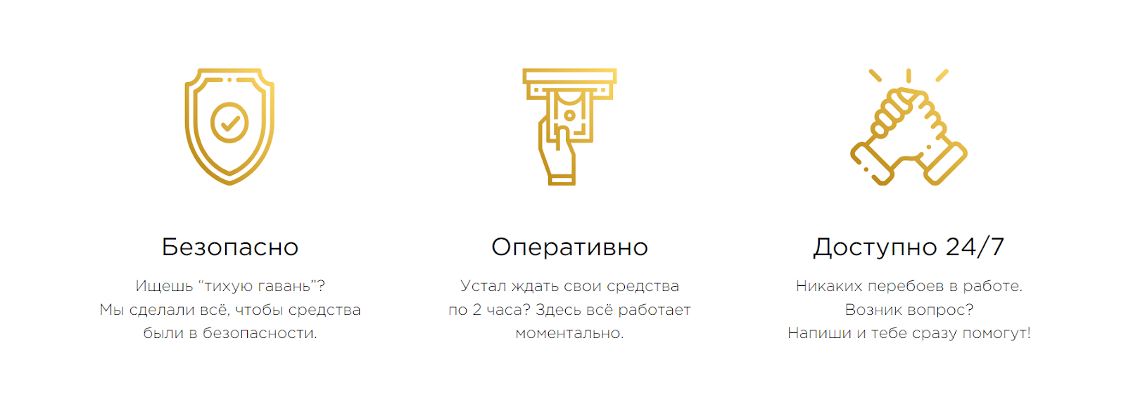 На сайте крипто-проекта пользователи могут прочитать о преимуществах и выгодных предложениях проекта. Одни из главных таких отличий от других платформ – работа с криптовалютой без рисков, безопасность сделок, удобство в использовании терминалов и при выводе средств, а еще постоянная поддержка и доступ к консультациям от менеджеров и представителей.