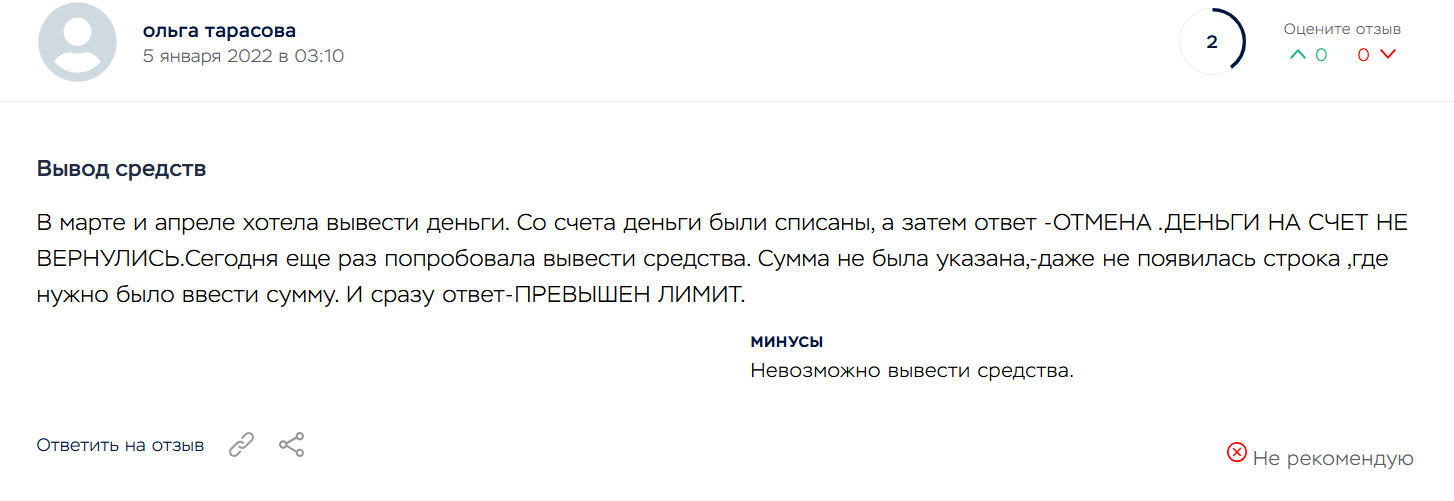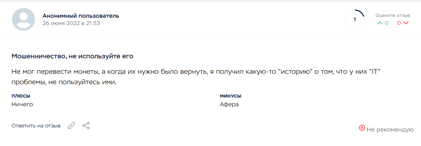 Пользователи указывают на большие риски и вероятность мошенничества, а это может быть одной из негативных черт биржи.