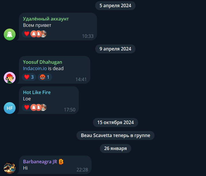В телеграмм-чате проекта Indacoin Wallet Limited пользователи могут общаться между собой и делиться мнениями о торговле с площадкой. Однако канал, как и сайт, перестал работать, из-за чего обратной связи получить не выйдет.