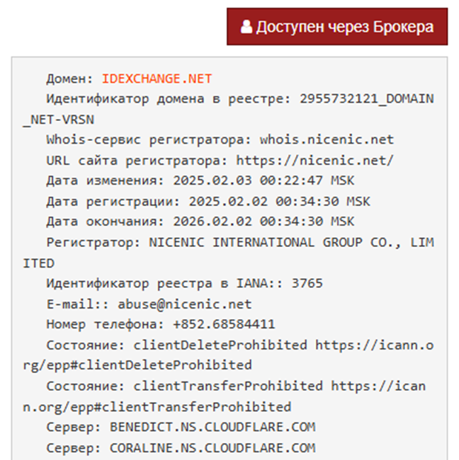 Владельцы обменника Index Exchange утверждают, что работают с 2018 года, но фактически сайт зарегистрирован 2 февраля 2025 года. Домен создан китайским провайдером NiceNIC INTERNATIONAL GROUP CO., LIMITED (NiceNIC.NET). Но если считать с даты создания канала в Телеграм, то ресурс запущен 30 апреля 2023 года.