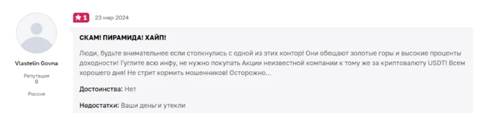 Положительных комментариев ни на сайте, ни на сторонних ресурсах нет. Из-за этого репутацию ресурса можно назвать, скорее, сомнительной. Бывшие клиенты явно не советуют эту платформу своим коллегам.