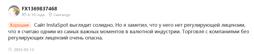 Отзывы о Instaspot com достаточно странные – есть явные несоответствия. На многих площадках у проекта низкие рейтинги, при этом достаточно много положительных оценок. Некоторые же люди прямо пишут, что у проекта нет регулирующей лицензии, из-за чего торговля становится очень опасной. Но эти же пользователи оценивают работу сервиса на “хорошо” – неясно, как это понимать.