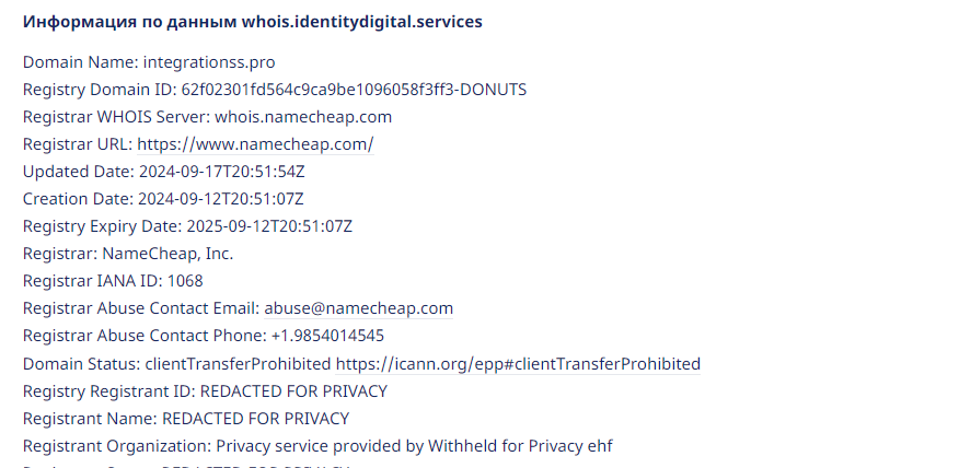 На ноябрь 2024, платформа Integrations pro заблокирована, вероятнее всего, за мошенничество. На сайте было указано, что компания была зарегистрирована давно, но неизвестно когда. Но, узнав информацию по данным сайта whois-сервиса, ресурс Integrationss pro был создан в сентябре 2024.