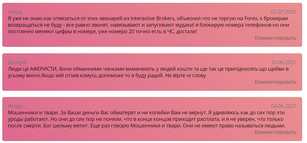 В интернете можно найти гневные и негативные комментарии о том, что брокер обманным путем выманивает деньги, после чего пропадает. Человек не получает ни дополнительную прибыль, ни вложенные средства. Каким отзывам верить – судите сами. Однако нежелательно связываться с ними, потому что можно остаться ни с чем. Также люди пишут, что фирма просто навязывает свои услуги и заработок на их торговых площадках.