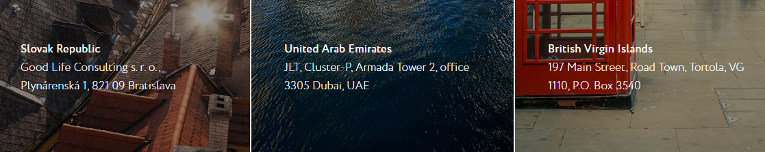 Биржа обещает клиенту «доступ к средствам 24/7 через личный кабинет». Однако аккаунт на сайте лишь отображает информацию о состоянии счета. Физически деньги будут находиться у управляющей компании. По факту, клиент должен передать свой капитал в доверительное управление, поэтому реальный доступ к нему будет потерян.У платформы якобы есть офисы в Словакии, Британии и ОАЭ. Но по факту на сайте указаны лишь адреса бизнес-центров. Нельзя быть уверенным, что представительства присутствуют там на самом деле.