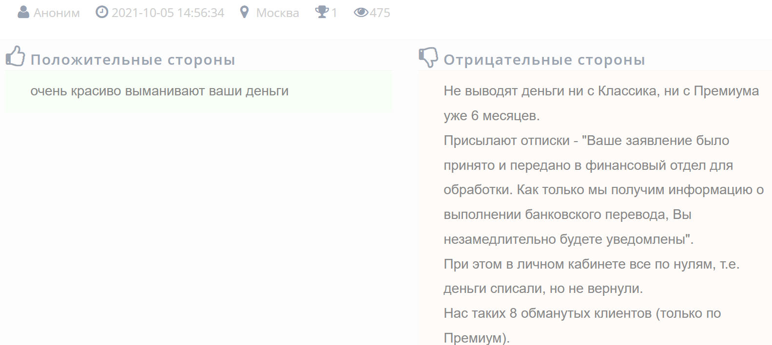 - Клиенты жалуются на то, что организация фактически ворует их деньги.