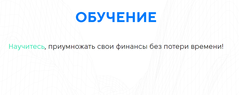 Первое, что бросается в глаза, – очень мало сведений на сайте. Здесь, конечно, есть несколько разделов, но они буквально пустые. Например, если вы откроете вкладку “обучение”, то вас встретит одно предложение на всю страницу.