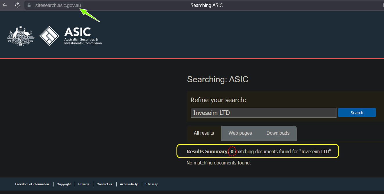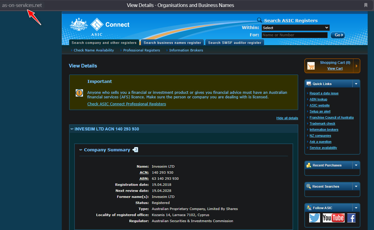 На официальных же порталах этих организаций никакой информации о регистрации Inveseim LTD найти невозможно.