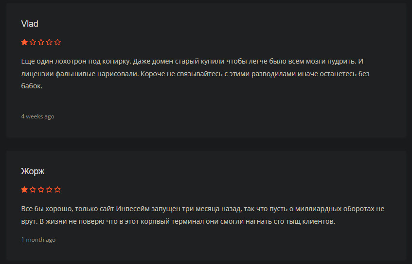 Выяснив на практике, что за сайт invems sm world и другие из той же связки, бывшие клиенты оставляют исключительно отрицательные отзывы.