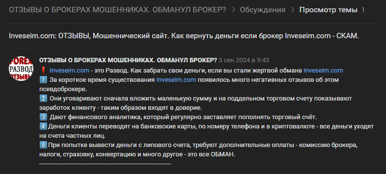 Проект Iv Seim: анализ брокерской площадки inveseim com и обзор отзывов о деятельности «Инвесейм»