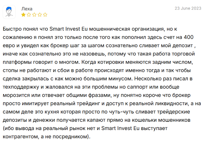 - У платформы негативные отзывы, которые обвиняют проект в сливе депозита и фейковых котировках, то есть, подтверждается сомнительное впечатление о данном инвестиционной компании.
