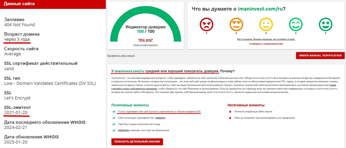 Анализ сайта imaninvest com
