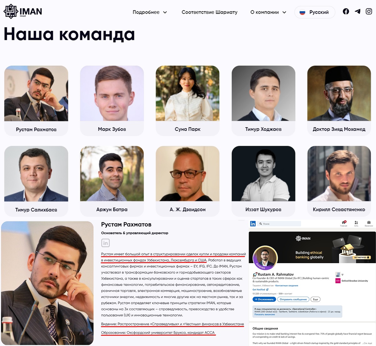 Проект ведет открытую деятельность и предоставляет клиентам регулирующую документацию. Пользователи могут ознакомиться с командой компании. Например, Рустам Рахматов это основатель и директор организации. Дополнительно у каждого сотрудника есть профиль на LinkedIn.