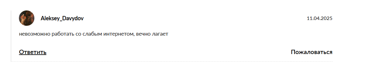 Один из клиентов жалуется на слишком частые зависания приложения и невозможность работать со слабым интернетом.