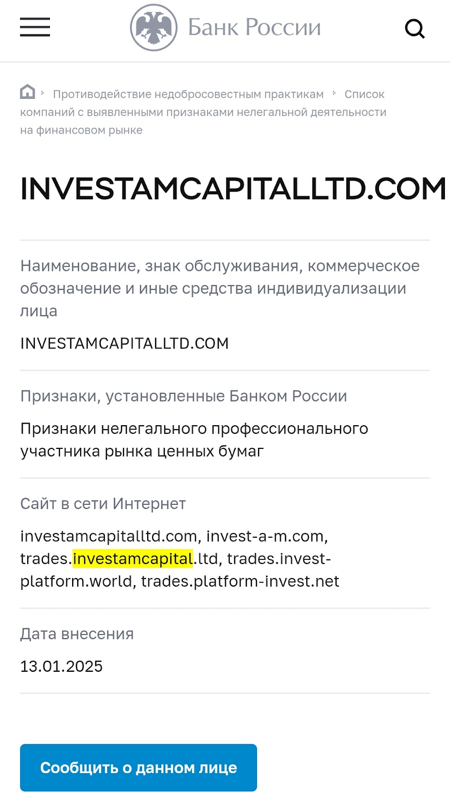 Оставьте свои отзывы и мнения об InvestamCapitalLtd com в комментариях. Ваш опыт поможет другим не потерять деньги.