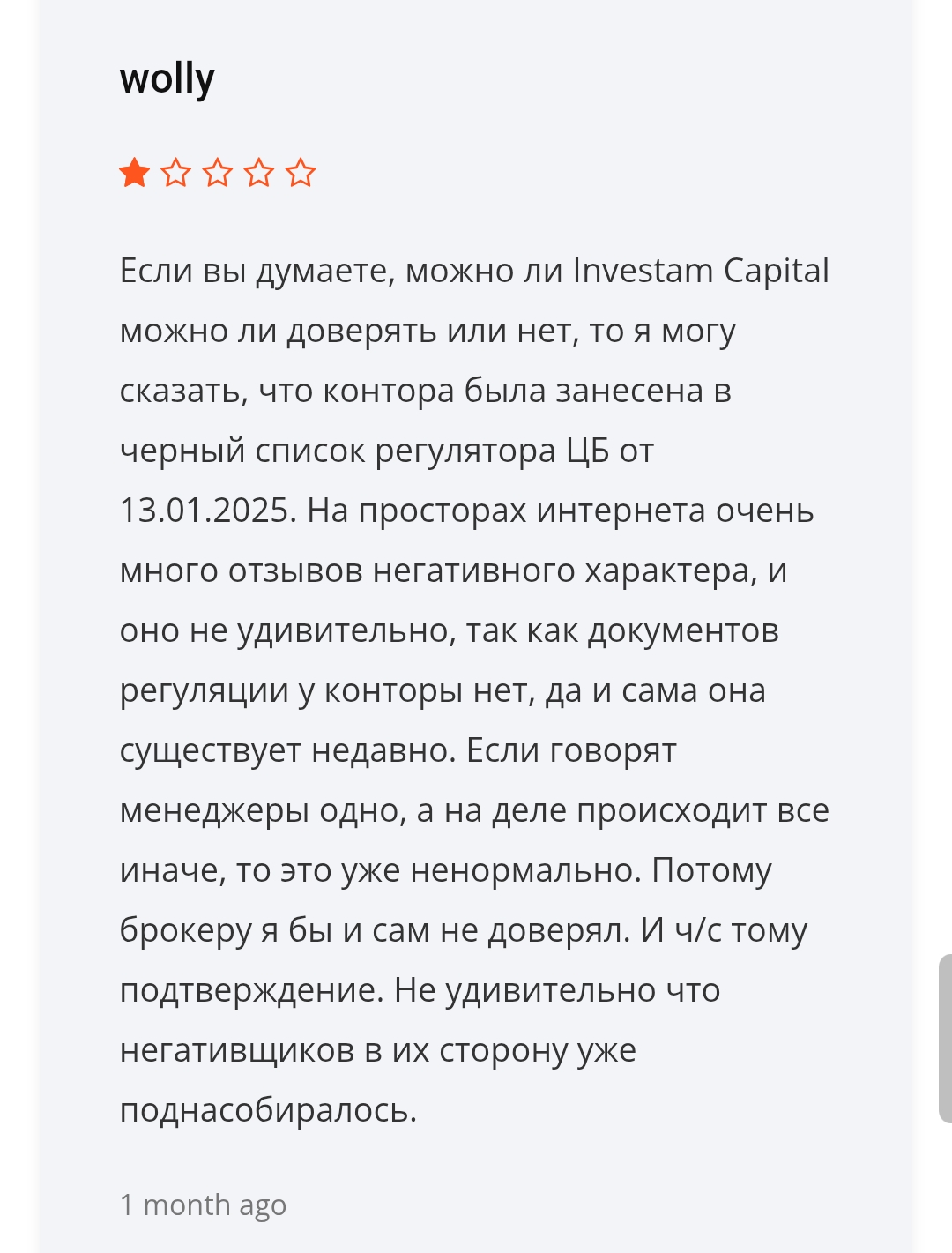 Оставьте Ваш отзыв о работе с Investam Capital Ltd