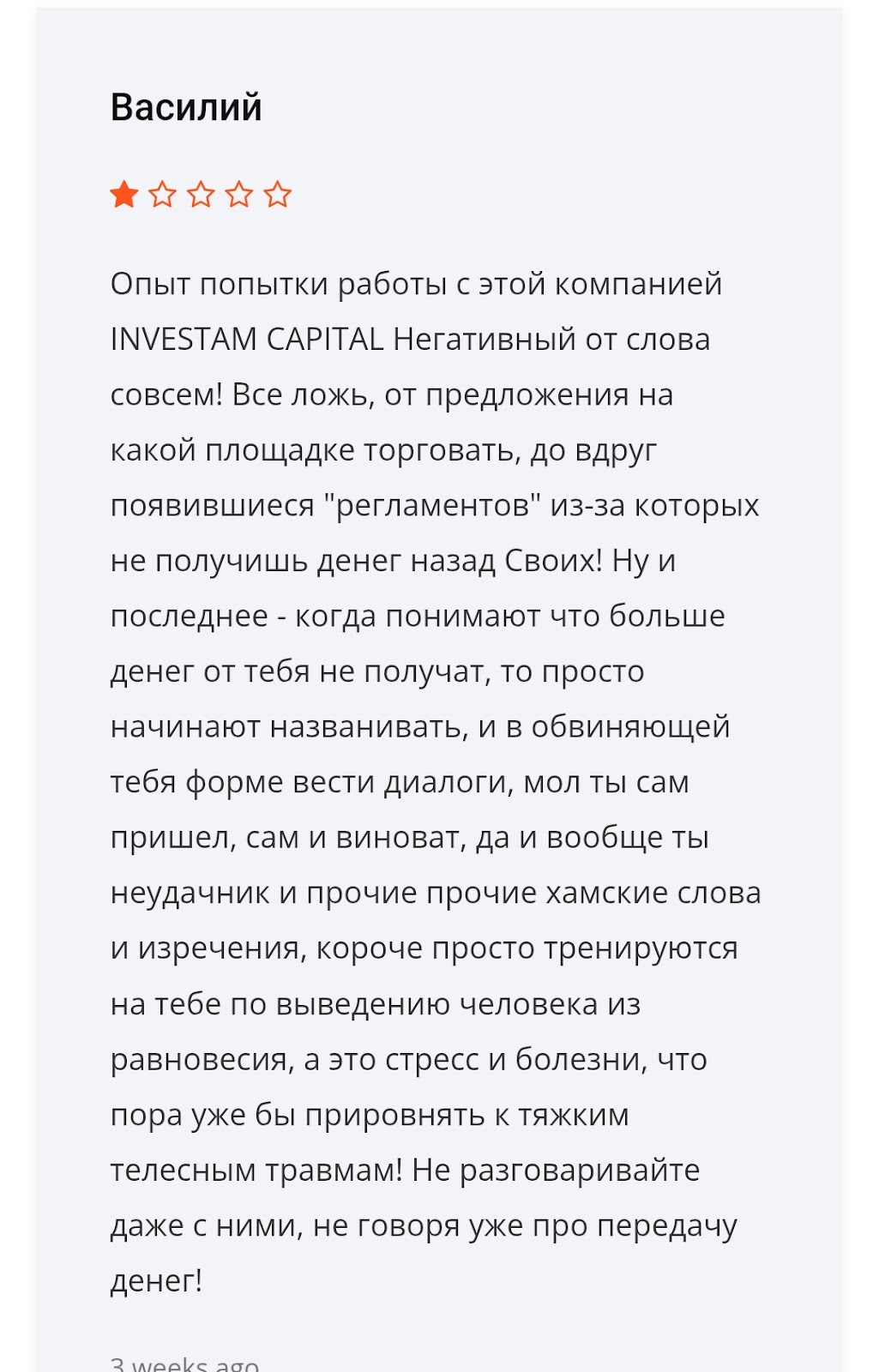 Отзывы трейдеров о работе с Investam Capital Ltd