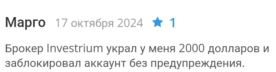 “Инвестриум” не имеет положительных отзывов. Люди соглашаются во мнении, что брокер является мошенником и заинтересован в обмане людей на деньги.