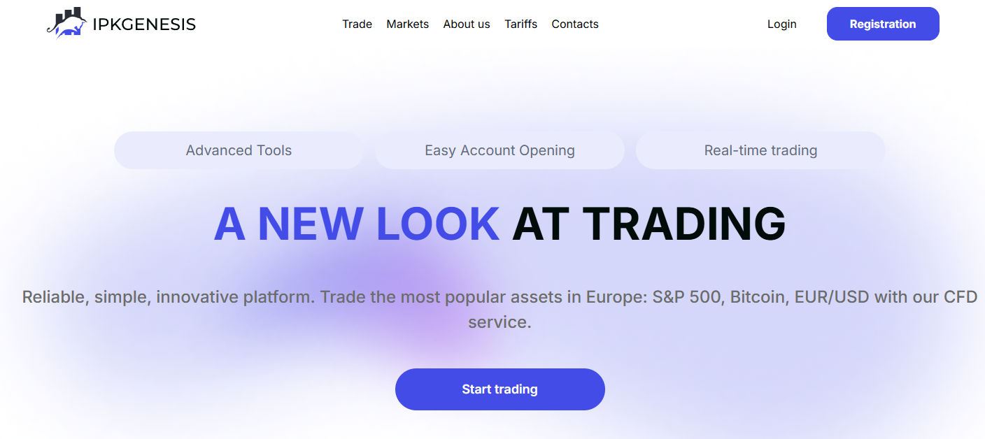Сайт брокера выглядит очень примитивно, он работает только на английском языке. На главной странице описаны плюсы работы с Ipkgenesis Trade, но мало конкретики. Заявлен доступ к торговле следующими активами: