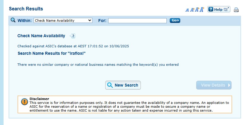 Проверка по базе австралийского регулятора Australian Securities and Investments Commission тоже не дала результатов.