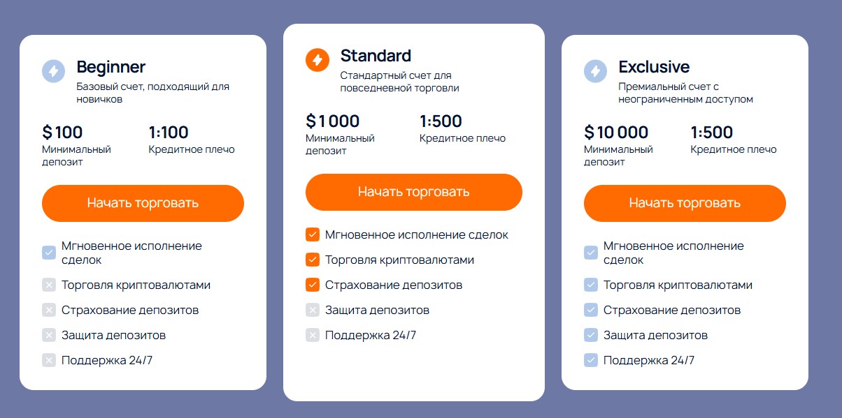 - Beginner. Тип платежного счета для новичков. Нужно внесение депозита в $100, кредитное плечо 1:100, высокая скорость сделок.