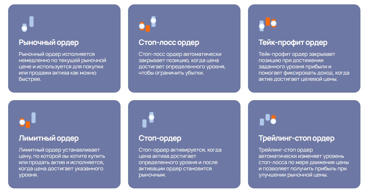Основатели платформы предлагают клиентам торговать и зарабатывать на валютном рынке, рынке акций, индексов, криптовалют, металлов. Чем больше объемы сделок, тем меньше комиссия, а инструменты торговли разнообразны: клиент может получать прибыль при помощи шести типов ордеров.
