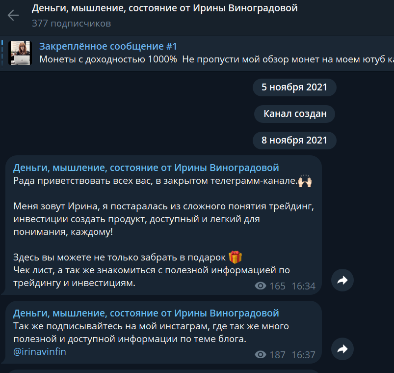 Канал в Телеграмм приватный, но заявки принимают автоматически, хотя здесь всего 300 подписчиков, посты набирают не более 100 просмотров, а комментарии хоть и включены, их почти никто не пишет. Проект запустили в 2021 году, а посты не всегда связаны с инвестициями, поэтому и подписчики часто общаются на другие темы.