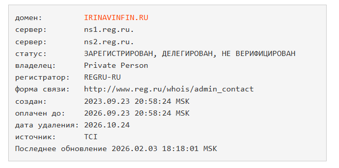 На канале Ютуб выложено более 300 видео, хотя большинство из них шортсы, а аудитория превышает 1000 пользователей, но просмотров некоторые ролики набирают мало – всего по 50. Домен IrinaVinFin ru зарегистрировали в сентябре 2023 года, что в совокупности с аккаунтами в соцсетях может говорить о приличном сроке работы.