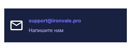 Обратиться к специалистам техподдержки за помощью можно двумя способами. В первую очередь стоит позвонить по указанным телефонным номерам. Также есть возможность связаться через электронную почту, отправив письмо по адресу support ironvale pro.