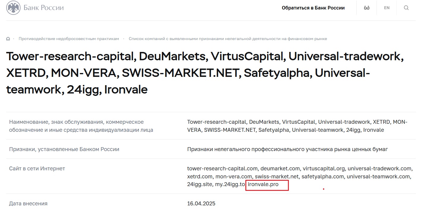 ironvale брокер