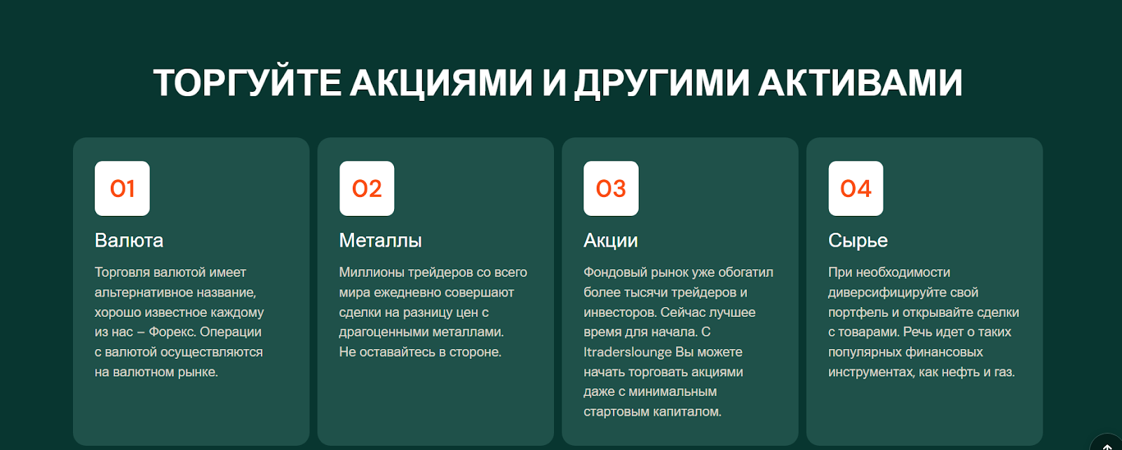 Одним из главных преимущества проекта является собственный платежный и торговый терминал, который позволяет работать с криптой и акциям на одном аккаунте, достаточно внести депозит на торговый счет Itraderslounge com.