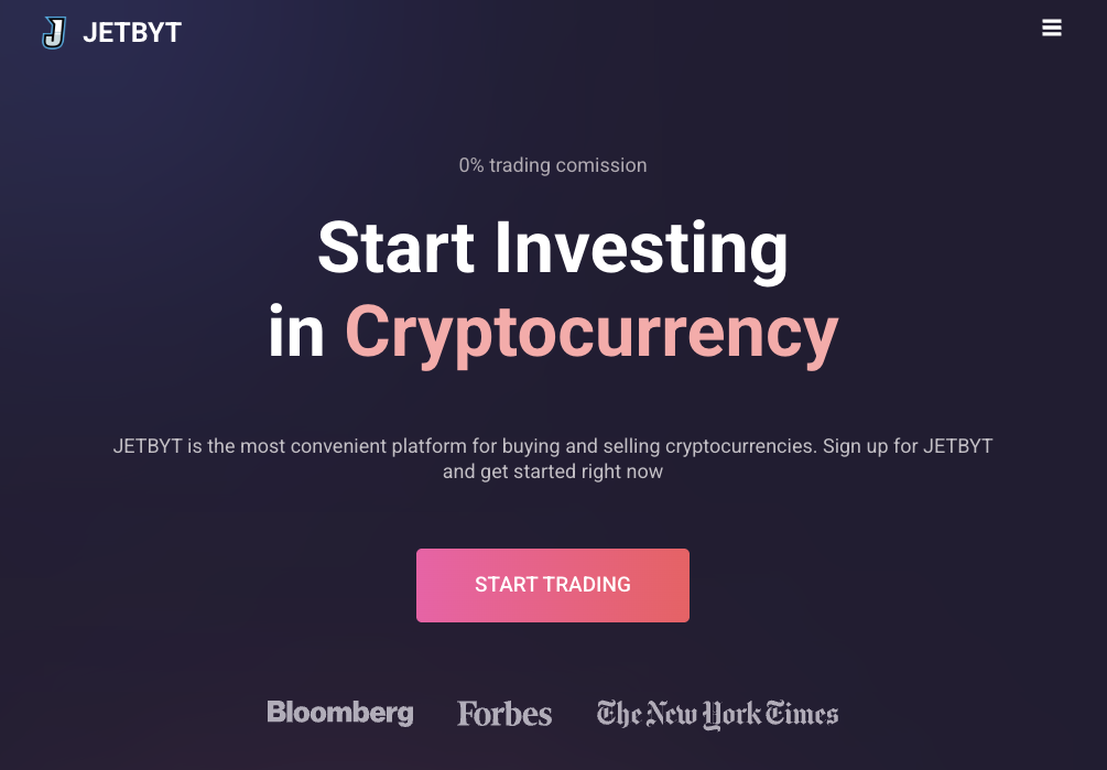 Jet Byt — криптовалютная биржа, на главной странице сайта которой обещают предоставить инструменты для легкого заработка при помощи цифровых активов. Одна из ключевых особенностей площадки — это нулевая трейдинговая комиссия.