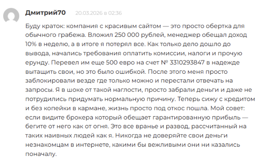 На сайтах и форумах в интернете «Джет Бит» почти не упоминают. Единственный найденный нами отзыв о бирже датирован двадцатым марта 2026-го года.
