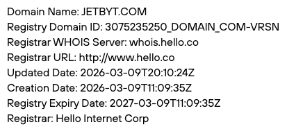 Владельцы криптобиржи заявляют, что у них большая клиентская база, а получить таковую возможно только при условии длительной работы. С целью узнать, как давно появился сайт jetbyt com, наша редакция запросила данные его домена из WHOIS.