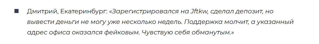 - Негативные отзывы о Jfktw com. Клиенты не довольны обслуживанием биржи. Для новых пользователей есть риск оказаться жертвой мошенников.