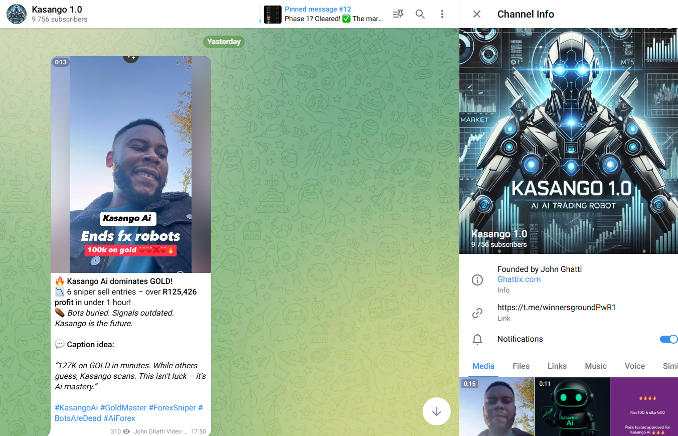 Ознакомиться с проектом можно с помощью тг-сообщества Kasango 1 0. На канал подписано 9.7 тыс. пользователей, однако посты просматривают до 1 000 человек, что говорит о привлечении ботов.
