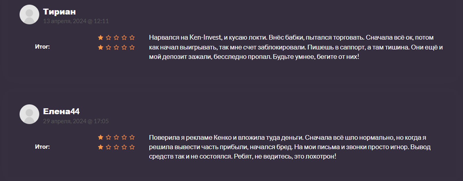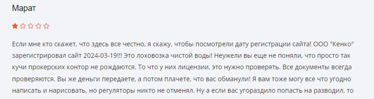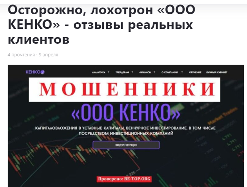 На обзорных сайтах “Кенко” помечен как мошеннический проект с ужасной репутацией.
