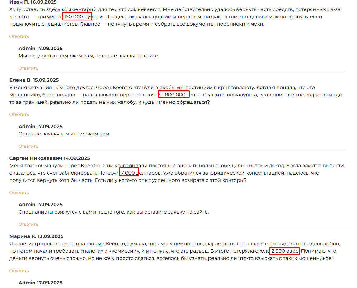 Отзывы пользователей на keentro info
